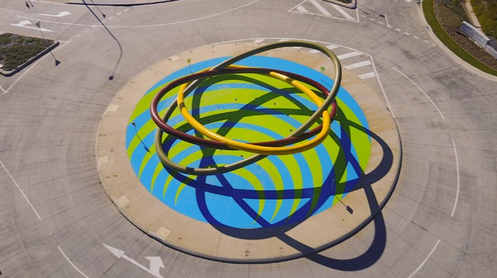 The sculpture symbolises the dynamic hub that is emerging at Glendale, bringing together employment, community and transport assets.