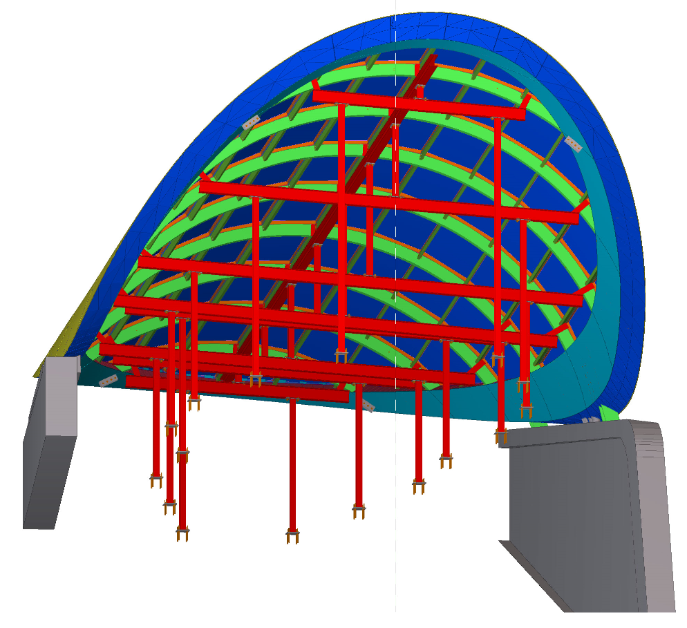 A specially fabricated secondary structure was designed and fabricated to enable the assembly.